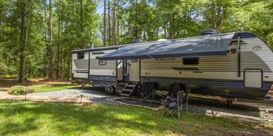 Rent our campsite and bring your RV-or rent one of our RVs and we'll deliver and set it up for you.